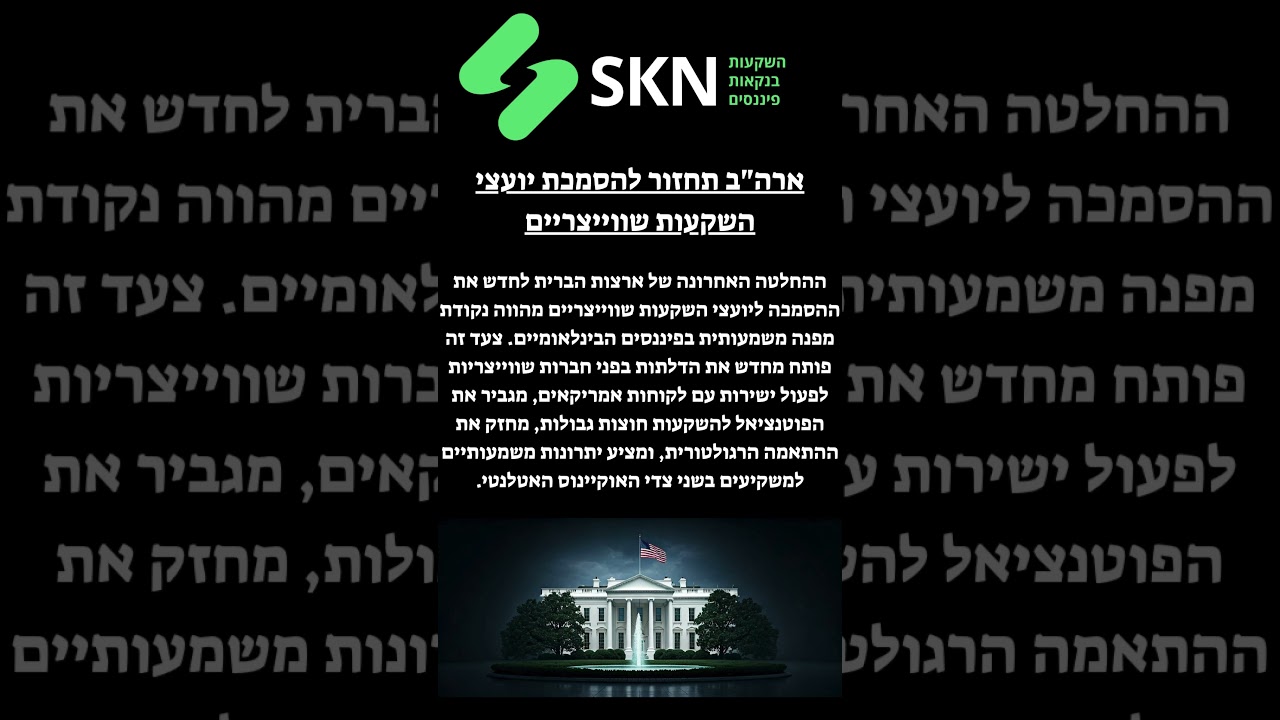 ארה”ב מחדשת את ההסמכה ליועצי השקעות שווייצריים: מה המשמעות עבור הנוף הפיננסי הגלובלי